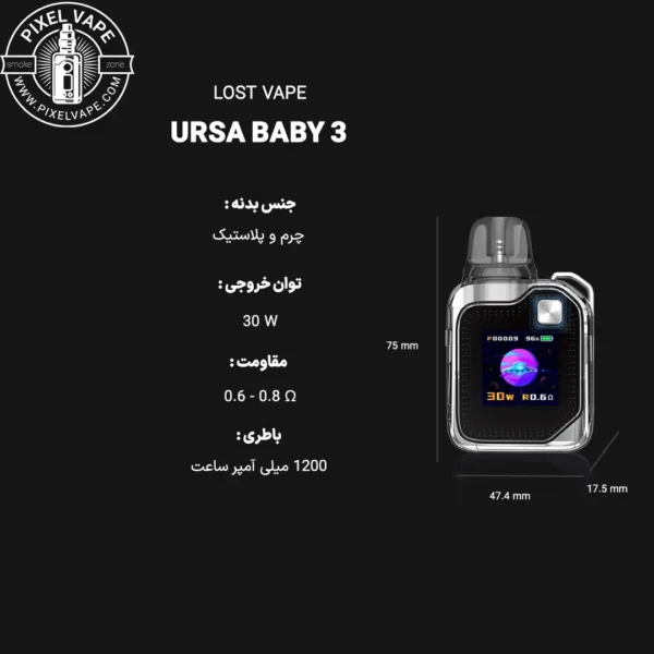 پادسیستم اورسا بیبی 3 (Lost Vape Ursa Baby 3) یکی از جدیدترین محصولات کمپانی معتبر لاست ویپ است که با طراحی مدرن، امکانات پیشرفته و عملکرد فوقالعاده، توانسته جایگاه ویژهای در میان کاربران پیدا کند. این دستگاه بهعنوان سومین نسل از سری اورسا بیبی، بهبودهای قابلتوجهی نسبت به نسخههای قبلی دارد و تجربهای بهینهشده از ویپینگ را ارائه میدهد.