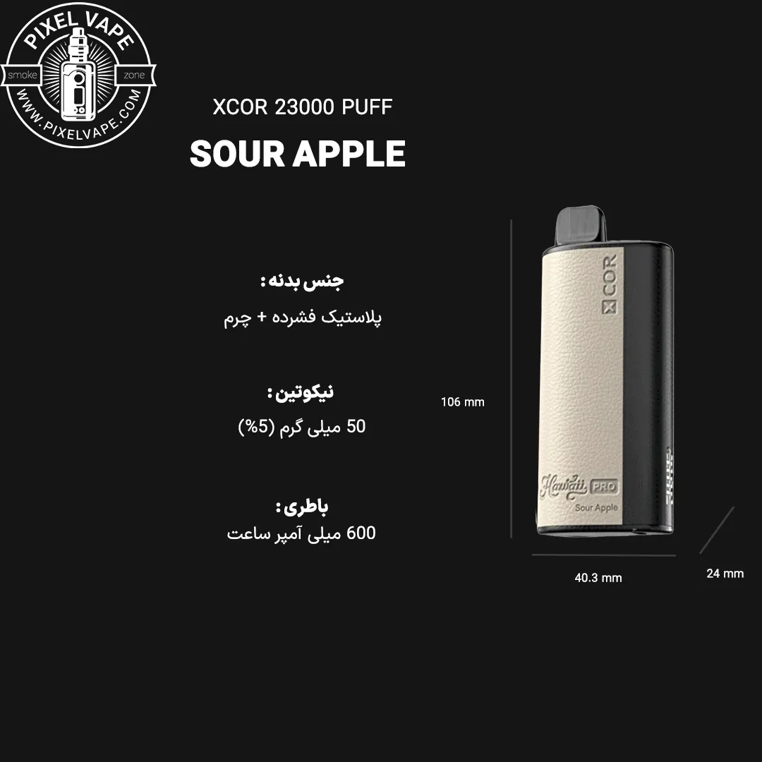 پاد یکبار مصرف ایکس کور 23000 پاف سیب ترش | XCOR 23000 Puffs Sour Apple