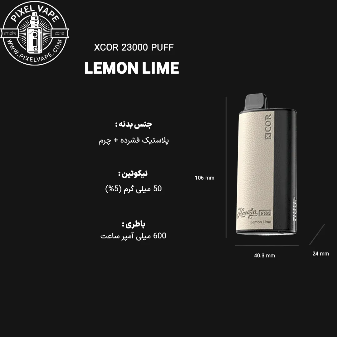 پاد یکبار مصرف ایکس کور 23000 پاف لیمو | XCOR 23000 Puffs Lemon Lime